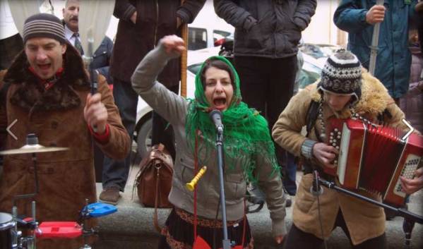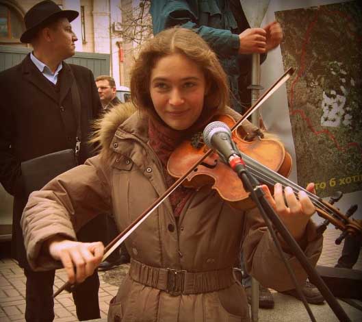 Початок акції у Києві, історичне перехрестя Хрещатика та Прорізної – схоже, що трембіти тут грали вперше в історії