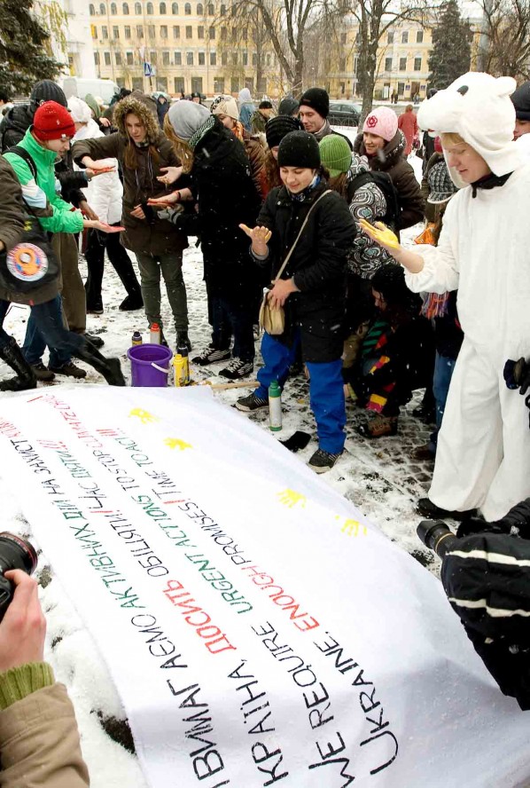 Автентичність звернення до урядової делегації скріпили власними долонями: люди і «ведмеді»